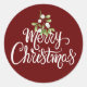 Merry Christmas Mistletoe Burgundy Elegant Script Classic Round Sticker