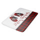 This rug is just as pictured! Vibrant Red and very soft material, nice to step in out of the tub! Matches my set of accessories and shower curtain! A must have to add some whimsy to your bathroom! Very nice, vibrant and clear print! Beautiful!