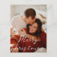 elegant merry christmas stylish handwriting couple photo Holiday Postcard