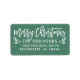 Holiday return address labels feature modern white script "Merry Christmas" writing with festive holly branches and berry accents. The pine green background colour can be customised.