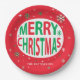 Merry Christmas Modern Red Holiday Personalised Paper Plate