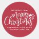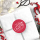 Merry Christmas Modern Red White Script Classic Round Sticker