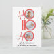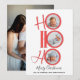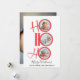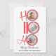 This design features a whimsical cute merry modern simple cute script,4 four picture photo collages, minimalist hohoho Santa typography, ho ho ho merry Christmas, clean trendy red and green, minimal circle photo multi collage, modern elegant simple trendy, modern calligraphy script font, simple and minimal whimsical style, Santa laugh quote saying