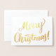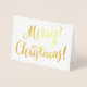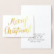 A stylish elegant bold typography script "Merry Christmas" design Holiday card with foil print on the front, and a personal message on the inside. To edit this design template, change the text in the field shown above. Click 'Customise' button to add images, customise fonts and colours.