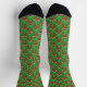 This awesome pair of patterned crew socks features a funny cartoon of a Christmas mouse with big round eyes, pink ears, a small pink nose and cute little twitchy whiskers. The mouse is wearing a red and white Santa hat ready for Christmas.