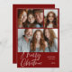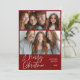 Merry Christmas Multi three photo Design Red Holiday Card