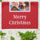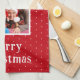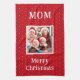 Add moms favourite photo to this personalised red and white christmas kitchen towel. Featuring cute white polka dot snow. To change the text and photo click on the personalise button.