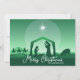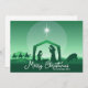 Merry Christmas Nativity Scene Green Religious Holiday Card