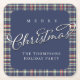 Merry Christmas Navy Blue Calligraphy Script Plaid Square Paper Coaster