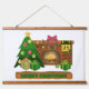 Merry Christmas near fireplace bonfire xmas tree Hanging Tapestry
