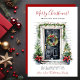 This watercolor Merry Christmas new home for the holidays announcement card with a festively decorated front door with pine boughs and trees, a wreath, and red holiday bows would be perfect to send to your friends and family now that you have moved to a new home. The sentiment is customisable. Get enough so that everyone you know and love has your new address. They'll be so excited about your big move!