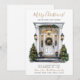 This watercolor Merry Christmas new home for the holidays announcement card with a festively decorated front door with pine boughs and trees, a wreath, and red holiday bows would be perfect to send to your friends and family now that you have moved to a new home. The sentiment is customisable. Get enough so that everyone you know and love has your new address. They'll be so excited about your big move!