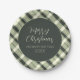 Merry Christmas Olive Green Plaid Script Rustic Paper Plate