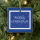 Merry Christmas on Blue with Snowflakes Ceramic Ornament