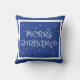 Merry Christmas on Blue with Snowflakes Cushion