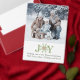 This design features a merry Christmas, a red and green, minimalist one photo greeting card with a brush script typography, a colourful cute snowflakes, with simple calligraphy, a rustic fun elegant, with a whimsical unique creative holiday photo card style.