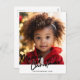 Merry Christmas script personalised photo holiday postcard. Personalise with your own favourite photo and add your message on reverse of this postcard. The perfect greeting card for all your family and friends. 100% customer satisfaction every day at Zazzle.