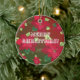 Merry Christmas decorative ornament with red Christmas Poinsettia flowers drawing.