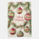 Merry Christmas Ornaments and Pine Branches Tea Towel