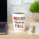 A festive Christmas graphic Cup featuring modern script typography with "Merry Christmas YALL" saying