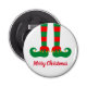 Merry Christmas party magnetic beer bottle opener. Funny Holiday design with custom greeting and cute elf's feet. Party favor gift ideas.