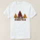 This white t-shirt features the text "MERRY CHRISTMAS" in a bold, patterned design. "MERRY" has a leopard print fill, while "CHRISTMAS" is filled with a red and green plaid. Three stylised Christmas trees, one plaid and two leopard print, decorate the top. The overall design is festive and uses bold patterns for a unique holiday look.
