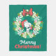 Merry Christmas Peppermint Holiday Wreath Fleece Blanket