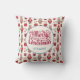 This fabulous Christmas folk art 16" x 16" cream pillow with a pattern of santas, reindeer, presents and stars that says "Merry Christmas" and has your last name would look awesome on your couch, bed or chairs! It's so festive and will go with any Christmas decor - it's rustic yet retro and modern yet traditional! It'll look fantastic and add that little extra Christmas touch to your home!