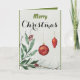This stylish yet minimalist “Merry Christmas” seasons’ greetings and holiday card features a simple yet elegant holiday ornament, flower pine arrangement with shades of winter green.