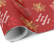Festive personalised Christmas holiday wrapping paper design with gold winter snowflakes and red glitter Xmas present and red ribbon bow on a plain green customisable background, personalise this design by adding your family name or Xmas text greeting and adding your favourite family photo. PLEASE NOTE the gold is not metallic.