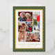 Merry Christmas Photo Collage Simple Modern Foil Holiday Card Foil Stamped Christmas Cards features a photo collage of five of your favourite photos with the foil text overlay "Merry Christmas" in modern calligraphy script typography on a polka dot pattern on a green background. Personalised your names or custom text below. Perfect for family and friends to celebrate Christmas and the holidays. Designed by ©2025 Evco Studio www.zazzle.com/store/evcostudio