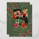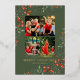Merry Christmas Photo Collage Watercolor Floral Foil Holiday Card Foil Stamped Christmas Cards features a photo collage of four of your favourite photos with the foil text overlay "Merry Christmas" in modern calligraphy script typography on a green background accented with watercolor winter greenery and red berries. Personalised your names or custom text below. Perfect for family and friends to celebrate Christmas and the holidays. Designed by ©2025 Evco Studio www.zazzle.com/store/evcostudio