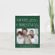 Elegant green holiday card featuring "Merry Christmas" in stylish vintage white typography, "happy new year" and a greeting in modern white typography, your photo and your name. Personalise your seasonal message to family and friends on the inside.