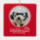 Merry Christmas Photo Greeting Card Red Wonderful Ceramic Ornament