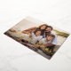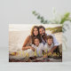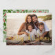 A modern look for a holiday photo card. A gold foil words - Merry Christmas -- are on top of the photo and holiday greeting. Botanical leaves are included on the back.