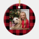 Merry Christmas Photo Red and Black Buffalo Plaid Ceramic Tree Decoration