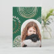 This beautiful Christmas card features a vibrant green print with circular geometric shapes and a modern arch shaped photo. The back features an editable personal message on a white background.