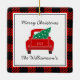 Merry Christmas Photo Year Name Red Truck Tree Ceramic Ornament