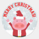 Illustration of a cute Pig dressed as Santa standing in a winter scene. Text reads: "Merry Christmas!"
