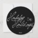 Round Christmas holiday photo card with a greenery and pine cones wreath, an area you can easily add a photo, white text that reads Merry Christmas, and an area you can add your name and current year on front. The back of the card is black with fancy white text that reads Happy Holidays with a couple snowflakes. Photography © Storytree Studios, Stanford, CA