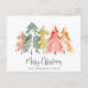 Merry Christmas Pine Trees Watercolor Photo Holiday Postcard