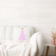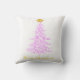 Merry Christmas in gold cursive text. Fun pink Christmas tree with star made from implied line edges, and curvilinear swirls. Crisp white background. Perfect for the holiday season, or Christmas in July. Original graphic design.