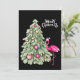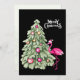 Merry Christmas Pink Flamingo and Pastel Tree Holiday Card