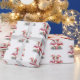 This cute holiday gift wrap features cute flamingos in Santa hats with gifts in soft watercolor shades of pink, red and green.