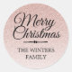 A modern, faux blush pink glitter ombre Merry Christmas sticker or envelope seal you can personalise with your family name or names. The pink glitter ombre pattern fades onto a white background. The text "Merry Christmas" in black is set in modern script. Perfect Christmas envelope seal with modern pattern, sparkle, luxury and glam.