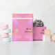 Printed with pink snowflake patterns in the background with text template for 'Merry Christmas'!