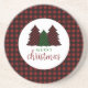 Merry Christmas Plaid Pattern Christmas Tree Coaster