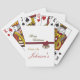 Beautifully detailed golden Merry Christmas text. A red ribbon crosses the playing cards and it has two golden bells for a festive Christmas theme. Add your own custom text.
