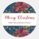 Merry Christmas Poinsettia Botanical Navy Blue Classic Round Sticker