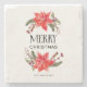 Elegant and rustic Christmas theme coaster featuring watercolor illustration of poinsettia and winter botanicals. The text says "Merry Christmas." Add your family name to personalise this design.